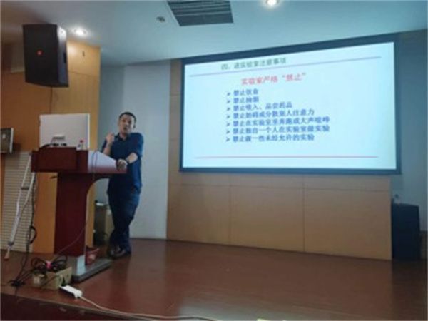 彭晖列举了近年来国内高校实验室安全事故的典型案例,强调了学习实验室安全知识和培养安全意识的重要性,重点讲解了关于危化品管理和使用、用电安全、消防安全等方面的知识。