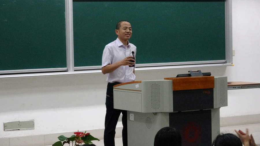 接下来学院教师代表赵振杰发言。他针对物理这门学科的学习提出了自己的看法与希望:一是希望大家要有目标并为之奋斗;二是要有充分的自信,即使可能自己的坚持存在错误,但是正是因为这份自信才能在不断琢磨中突破自我,进而达到满意结果;三是叮嘱我们一个人的心有多大,舞台就有多大,要不断超越自我;最后祝愿我们要热爱生活,享受生活,开启自己精彩的新篇章。