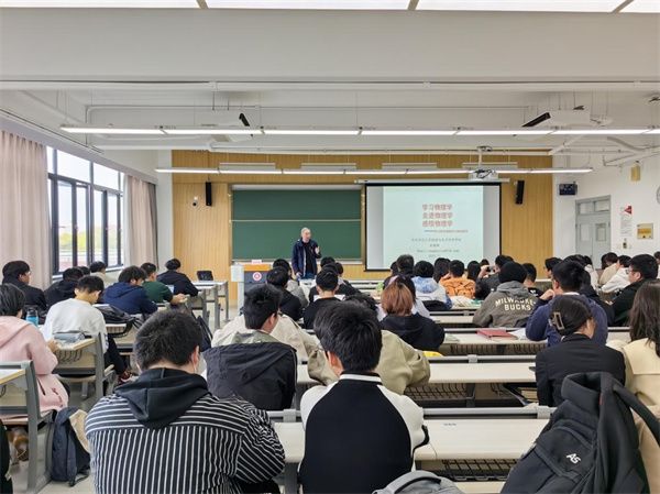 11月14日下午,胜游体育2023年秋季团校开班仪式在闵行校区四教214教室举行,学院关工委分委会副主任朱鋐雄作“学习物理,走进物理,感悟物理”主题报告,70余名团校学员参加开班仪式。活动由学院团委书记王儒佳主持。