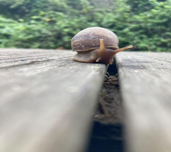 茶园里,春茶的新芽悄然探出了头;草丛中,孤傲的白花静静地绽放;墙角边,一只蜗牛正缓慢而坚定地向上爬行,它一步一个脚印地向上攀登,仿佛有着自己的目标和信念。