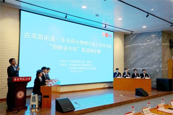 为深入学习习近平文化思想,深化党建引领,坚定文化自信,推进高校与街道联学共建,11月17日,学院与古美路街道“扬帆追光杯”辩论赛在光学大楼报告厅举行,古美路街道党工委副书记、办事处主任周君咪,党工委副书记夏卫标,党工委委员、党建办主任钱志维,古美路街道党的建设工作领导小组办公室专职副主任张辉,社区党群服务中心主任张晓玲,学院关心一代工作委员会副主任朱鋐雄、特邀党建组织员丁良恩、于龙生,退休党支部书记章继敏,学院团委书记王儒佳担任辩论赛评委;古美路街道团工委、党建办、社区党群服务中心等相关科室负责人以及第二期青年骨干班学员,学院团校学生学员参加学习,辩论赛由学院书记助理、专职辅导员王元力主持。