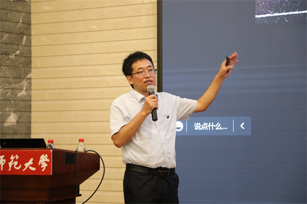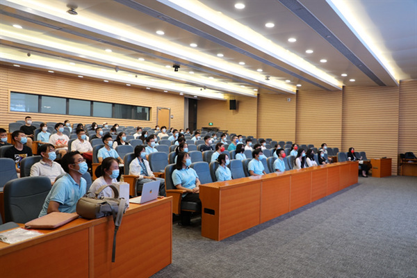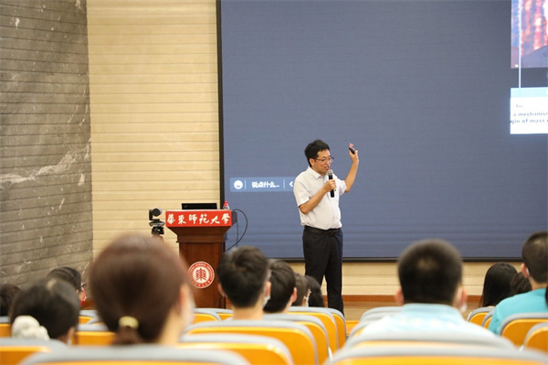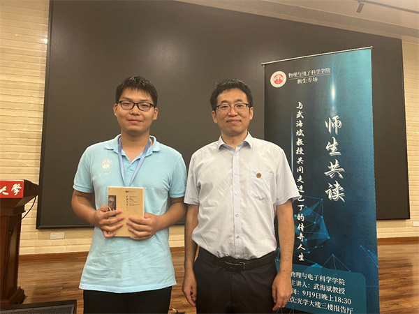 9月9日晚,胜游体育“师生共读”新生专场在闵行校区光学大楼报告厅举行。学院副院长武海斌教授作为本场导读人,与2022级新生共读《旷世奇才:巴丁传》,活动由学院党委书记助理、团委书记王元力主持,学院党委副书记蒋旭、精密光谱科学与技术国家重点实验室党总支副书记马玲等参加。
