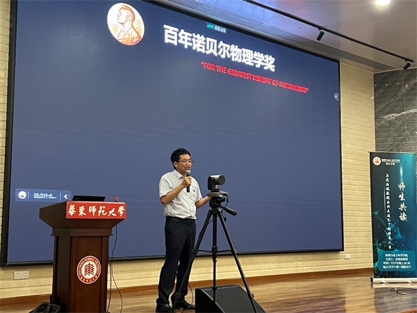 武海斌从“人类从哪里来(past),现在在哪里(today),未来到哪里(future)去”三个问题引入,带领同学们回顾了百年诺贝尔物理学奖获得者及其成就,这其中就包括了两次诺贝尔物理学奖获得者:约翰·巴丁。