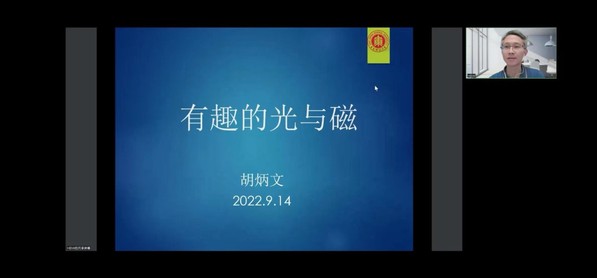 学院副院长胡炳文以“有趣的光与磁”为主题,作首场科普报告。他以“薛定谔的猫”与“单光子行为”等有趣的物理知识为引,通过光影实验和对磁性与超导的讲解,以图片和视频相结合的方式,生动形象地展现了光现象和磁现象的趣味与奥秘。