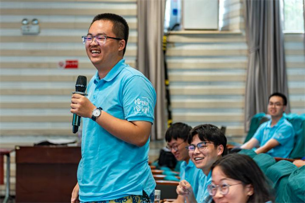 2024级新生踊跃提问,与程亚院长进行互动交流。2024级物理学本科新生马宇曦同学提问到,“院长所讲的内容中,我发现物理科技与化工、材料学有所关联,那么物理中是否要开展大量跨学科的研究呢?”。对此,程亚院长回应道,物理学是一门高度综合的学科,他强调夯实物理学的基础知识的重要性,并希望同学们能成为一名能够跨越多个学科的复合型人才。