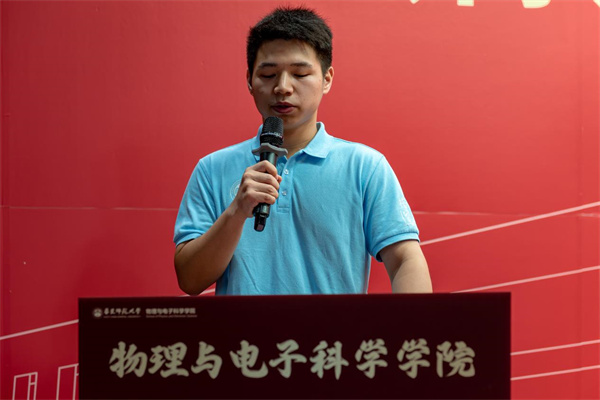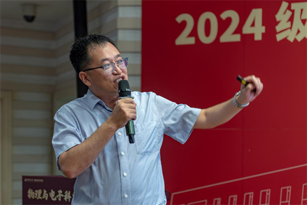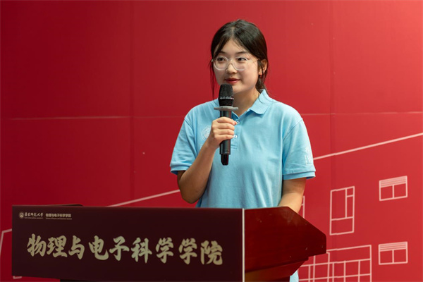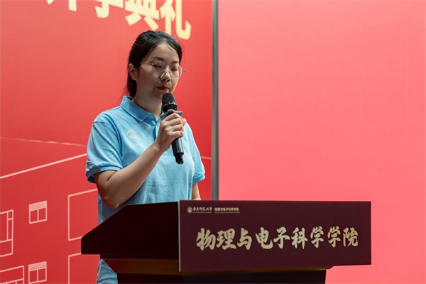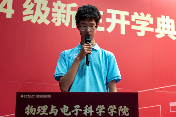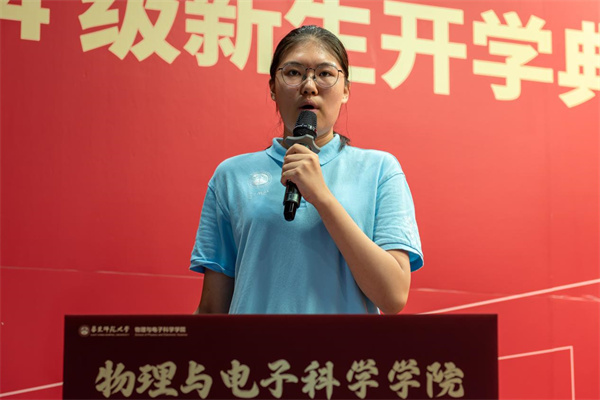 2024级物理学(师范)专业本科生孙梦瑶、物理学专业本科生韩佳珊、电子信息科学与技术专业本科生高远、电子科学与技术专业硕士研究生钱超和物理学专业博士研究生孙楠楠作为新生代表发言。
