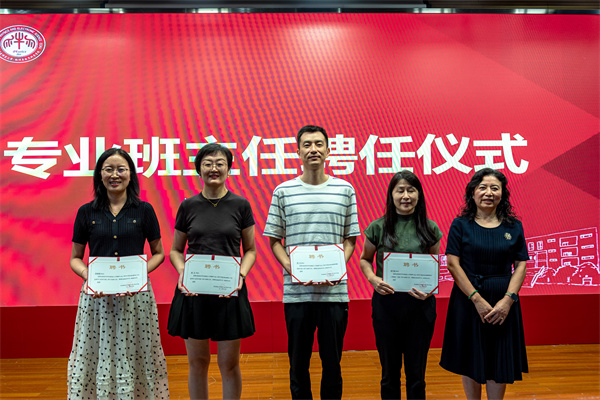 为支持和帮助同学更好地适应大学的学习生活,快速融入大学,学院聘请成岩、张媛媛、蒋冬梅、张金中、阮健红、刘金梅和周杰7位优秀的青年教师担任2024级新生青蓝工程专业班主任,学院党委书记李恺为2024级专业班主任代表颁发聘书。