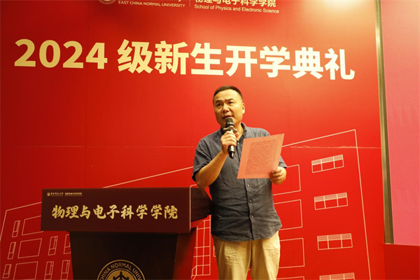 在庄严的国歌声中,典礼正式拉开帷幕。学院院长、精密光谱科学与技术国家重点实验室主任程亚对2024级全体新生致以热烈的欢迎,并以“点燃青春熊熊火焰,创造推动世界进步的奇迹”为题进行致辞。