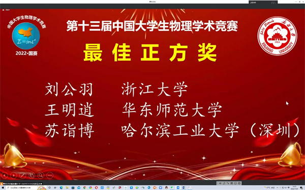 华东师大学子再次斩获中国大学生物理学术竞赛特等奖
