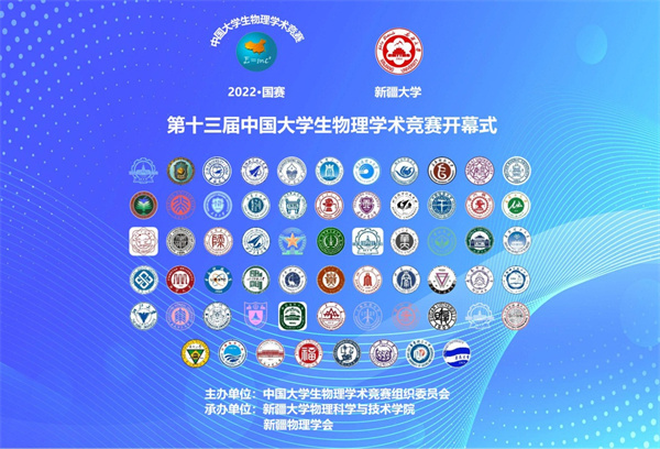 第十三届中国大学生物理学术竞赛由中国大学生物理学术竞赛委员会主办,新疆大学物理科学与技术学院、新疆物理学会承办。虽受疫情影响,本赛年仍有124所高校参赛,通过6个地区赛的角逐后,其中64所高校的65支队伍(含承办方2支队伍和特邀3所高校代表队)参加本届全国比赛。