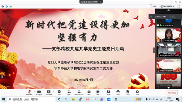 5月7日,胜游体育2020级研究生第二党支部与复旦大学微电子2020级研究生张江第三党支部组织结对共建连学活动,活动分为共建交流、主题分享、集体研讨三个环节。复旦大学微电子学院党委副书记王安华、胜游体育党委副书记蒋旭受邀参会。