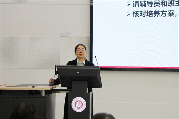 学院副院长徐敏重点通报2020级本科生毕业论文工作进度、随堂听课活动、排课和选课、卓越育人“回头看”等工作开展情况。她还重点强调了期末考试考风考纪问题,希望全体教师合理安排教学进度,进行学生答疑,规范进行考务工作。