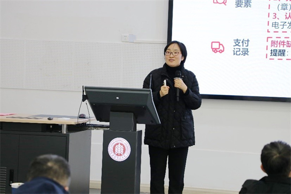 陆智萍从日常报销、科研经费、收费票据、酬金发放、财务信息化、财会监督等方面对学校财务制度进行宣讲。她详细讲解了日常报销中的注意事项以及办公用品相关报销规定。她强调,2024年学校财务处将全面梳理并优化财务制度,进一步简政放权、优化流程,改革和创新财务服务模式,制定“只跑一次”清单,加强财务政策宣讲,有效提升服务质量。