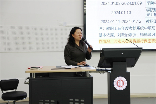 李恺传达了学校、学院2023年度教职工年度考核工作安排,提醒教职工以岗位职责及年度工作任务为基本依据,对政治素质、师德师风和工作实绩等进行全面总结、述职,同时对近期学院各项重点任务作进一步强调,提醒全院教师要继续加强实验室安全管理、认真做好教学、科研、人才培养等各项工作。