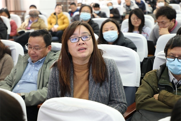 在交流发言环节,陆智萍及财务处相关老师围绕学院教师们提出的问题,一一进行解答,李恺代表党政班子对财务处表示感谢。