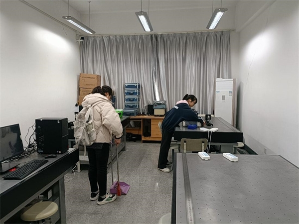 3月1日下午,学院学生会骨干成员与实验室老师一起,开展实验室整理、维护工作,师生协同合作,进行卫生清理、仪器收纳、安全制度张贴,让实验室在新学期焕然一新。