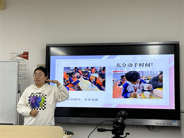 课程结束后,宣讲团志愿者、2020级物理学(师范)专业本科生韩婷分享了课程准备、授课经验和教学反思。她强调,远程教学中更要注重学生的互动,实现线上线下同步操作。