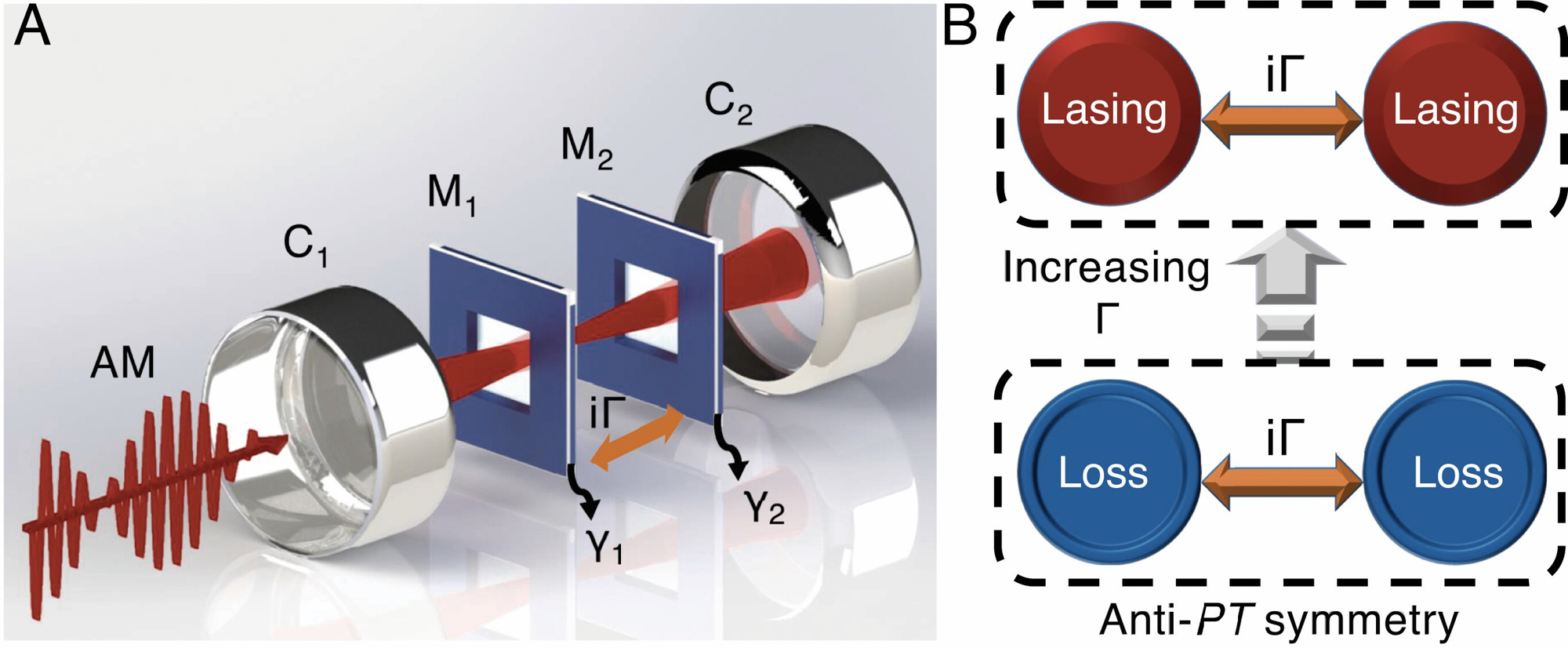 激光与普通光源相比具有单色性好、相干性好、方向性好、亮度高等优势,是20世纪人类的重大发明之一,被称为“最快的刀”、“最准的尺”、“最亮的光”。声子激光作为光学激光的相对应,有望应用于精密测量、信息处理以及量子物理等方面的研究,引起了人们极大的兴趣。然而目前绝大多数实现声子激光的方法都是基于直接的相干泵浦。与直接相干耦合不同,耗散耦合在开放复杂系统中普遍存在,与非厄米性和对称性密切相关,可引发许多非凡的物理现象,例如非互易热输运、手性动力学、超灵敏传感等。直观理解,耗散不利于声子激光产生。基于双微纳振子腔光力实验平台,利用腔内光场的辐射压力实现两个振子的纯耗散耦合,通过非厄米相变,实现了耗散耦合诱导的多模声子激光。研究成果提供了一种在非厄米开放系统中研究声子激光的新方法,可以广泛应用于光学、声学和量子多体物理等多个研究领域。