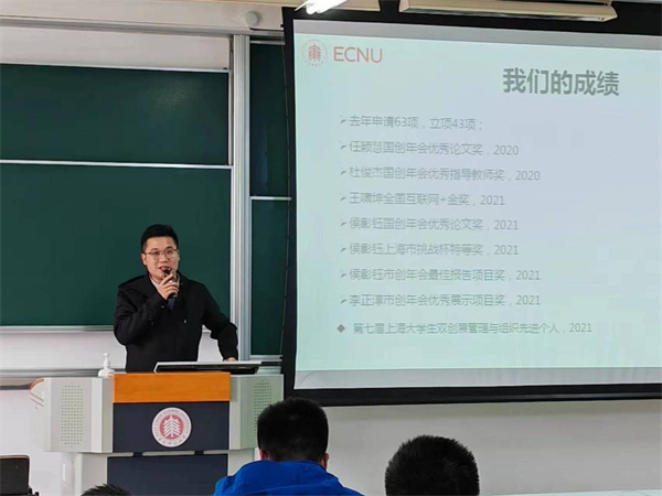 王元力从基础知识学习运用、学术生涯规划两个方面分析了本科生参与创新创业训练的重要性,对中国国际“互联网+”大学生创新创业大赛、“挑战杯”全国大学生课外学术科技作品竞赛等不同类别的课外创新创业项目作了详细介绍。王元力表示,参与科创项目是同学们投身学术研究,拓展科研视野的重要平台,也是同学们检验研究成果,实践知行合一的关键渠道,希望同学们在参与创新创业实践中打破专业壁垒,激发科研兴趣,提升研究能力,成长为更加优秀和卓越的自己。