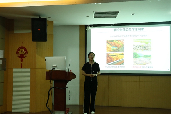 孙钰雯同学带来的《颗粒堆积取向机制分析》,深入探究不同颗粒结构堆积取向的主导因素以及无序与有序体系的转变规律。