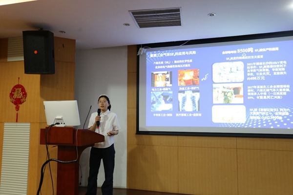 祝润苗同学在《高灵敏PI空心光纤SF₆气体传感器的研制》研究中,以比尔-朗伯定律为理论基础,深入阐述了基于光子带隙空心光纤(PBG-HCF)的 SF₆气体传感原理与核心设计。报告系统介绍了传感器结构、关键外围控制系统,并重点探讨了提升灵敏度、选择性与响应特性的性能优化策略。