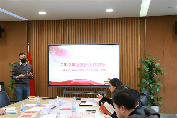 支部书记潘海峰代表支部委员会回顾总结了2022年度支部工作情况,分析了支部工作的不足及下一步工作思路。他谈到,2022年支部党员凝心聚力、同向同行,筑牢疫情防控坚强防线;坚持双融互促,依托“科研高地”,在重要成果攻关上发挥模范带头作用;秉承“科学家精神”,厚植理想信念,全力推进特色党建工作。潘海峰表示,2023年支部将继续围绕实验室中心工作,在党建引领、丰富内涵、服务师生、凝聚合力上进一步发力,有效助推卓越育人和卓越科研。会上,潘海峰还通报了支部作为第三批“全国党建工作样板支部”的培育创建情况及2022年度党建经费使用情况。