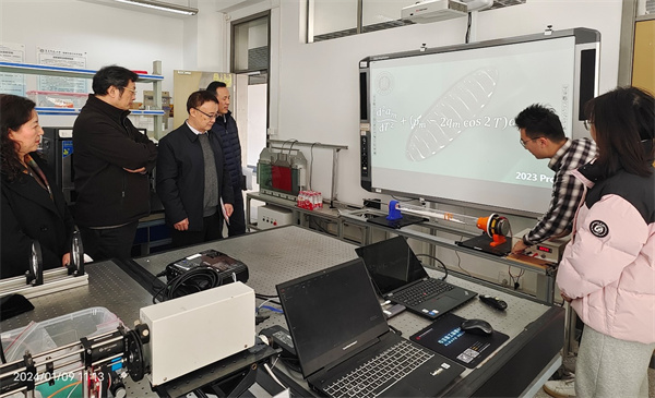 随后,校领导一行参观了CUPT实验室。李恺介绍,自2018年起,学院从师资、设备、经费等多方面对物理实验教学中心进行持续投入和重点建设,近年来,学院在科创竞赛与拔尖创新人才培养等方面取得了不错的成绩。施国跃高度肯定了学院在拔尖创新人才培养、师范生科普实践训练等方面的积极贡献,鼓励学院师生迎难而上,不断创新,拓宽发展之路。