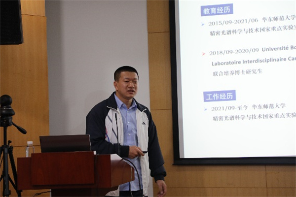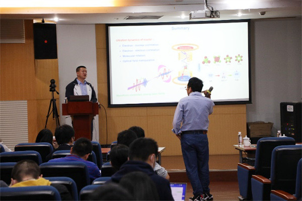 青年研究员陈文专注于纳米光子学方向的研究,他的报告内容主要是基于表面等离激元纳米光腔的精密测量与新型应用。专职副研究员员马俊杨做题为《分子强场电离与转动》的主题报告,分享了近期的研究进展。