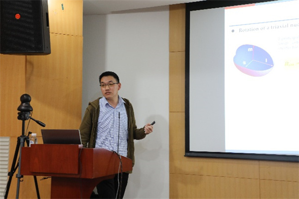 青年研究员黄陆军主要从事共振纳米光学和声学的研究,他在报告中分享了最新工作进展。青年研究员徐杨介绍了近期对自旋1/2 反铁磁海森堡自旋链苯甲酸铜的极低温热导率研究工作。青年研究员陈启博从原子核摇摆运动的研究背景切入,涵盖理论预言、实验验证和工作进展等内容。