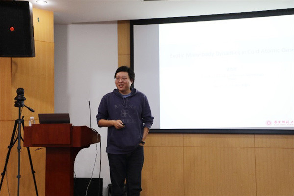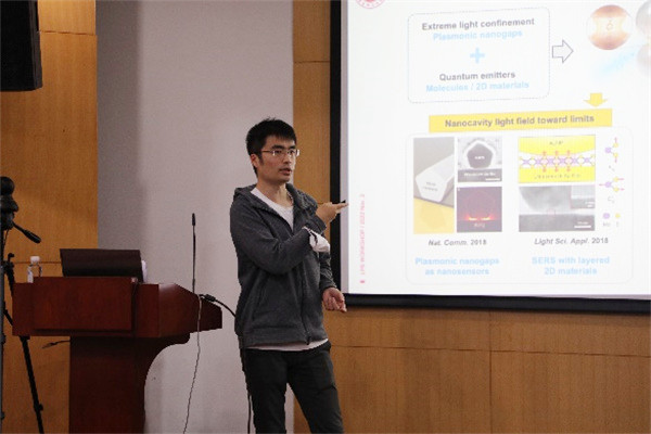 青年研究员邹海源以一维横场依辛模型这一精确可解模型为例,介绍对量子相变在复温度内的临界行为进行的研究。青年研究员朱晓龙介绍课题组在利用人工光子结构增强光与物质相互作用,及光与人工光子结构中电子、声子、激子等的极化激元强耦合及对其调控方面做的相关工作。