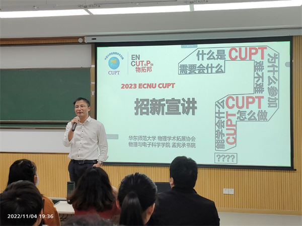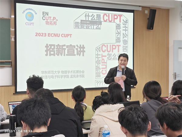 近日,胜游体育联合孟宪承书院举办2023中国大学生物理学术竞赛(China Undergraduate Physics Tournament,以下简称CUPT)集训队成员招新系列活动,在学校教务处、胜游体育及孟宪承书院的积极组织下,百余名新生参与了招新宣讲会、赛题解析会及自主创新实验室参观等活动。