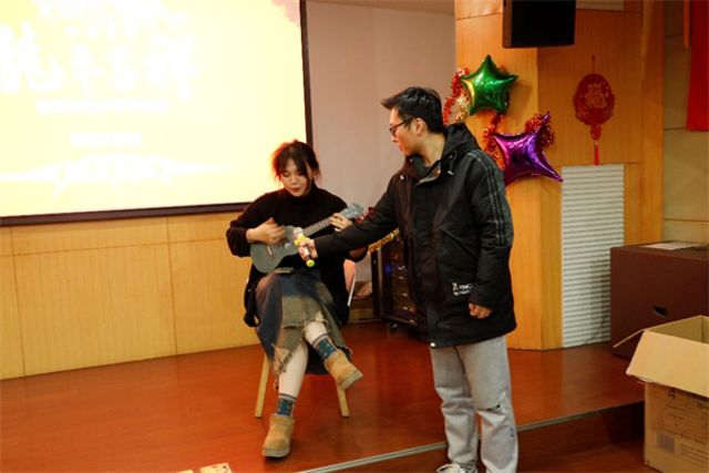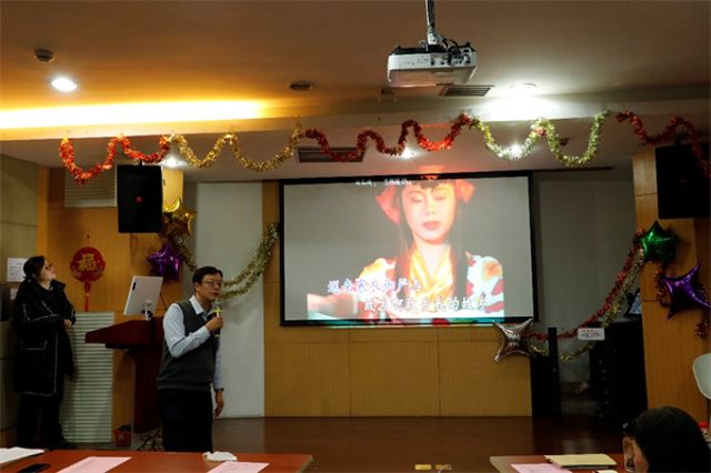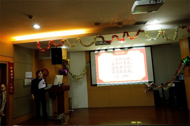 联欢会节目精彩纷呈,周婧雯同学弹唱的《第一天》、保睿同学的舞蹈《Love dive》,展现了胜游体育学子的歌舞才艺;黄荣的《北国之春》、刘宗华的《山茶花》、徐敏的京剧《霸王别姬》、孙海涛的《传奇》、黄文峰的《青花瓷》、周杰和霍思宇的《我的祖国》等演唱曲目,掀起了一个个联欢会高潮。张哲娟的《猜灯谜》更是让全场开动脑筋、气氛热烈。