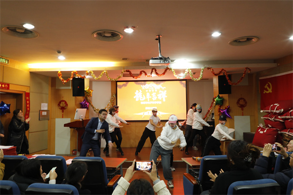 由学院行政团队带来的暖场节目《科目三》,用活力四射的舞蹈拉开了联欢会序幕。