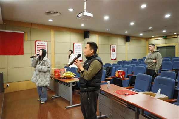同乐会上,师生们展才华、同游戏,话新年、传情谊。活动内容丰富多彩,有“拟声猜词”“首字母组词”等趣味游戏,还有歌曲串烧等精彩节目。师生一起倾情献唱,现场氛围十分热烈。节目中还穿插了抽奖活动,学院为到场同学们送出了精心准备的留校礼包。