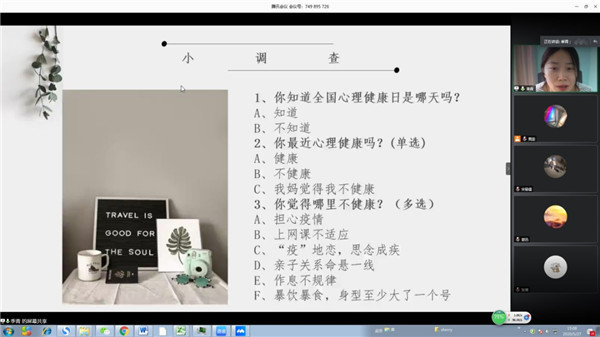 与会同学纷纷表示,线上的主题报告和经验分享,帮助大家更好地掌握了心理调节和心理疏导的方法,以更加积极乐观的心态面对学习生活。