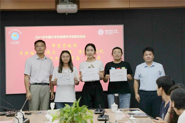 参赛队员依次分享了自己加入CUPT团队的收获和感动。与会领导为CUPT竞赛年度贡献奖、优秀贡献奖、杰出贡献奖获得者颁发奖状。