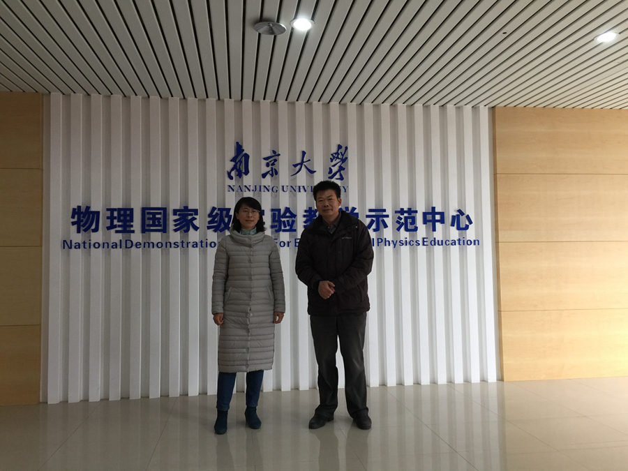 在物理学院副院长吴小山的陪同下,大家一起参观了南京大学仙林校区的基础物理实验中心,听取了实验中心副主任胡小鹏对中心整体情况的介绍。南大物理国家级实验教学示范中心的教学理念是让学生们接触前沿科学,增强动手能力,所以基本课程设置都是围绕这一核心。课程的构成主要分成三层次:基础+综合+研究。副院长吴小山还对整个实验中心人员的构成、正高、副高教职工的比例、经费来源和高端演示物理实验的开课情况作了补充,随后我们还参观了仙林校区的实验室。