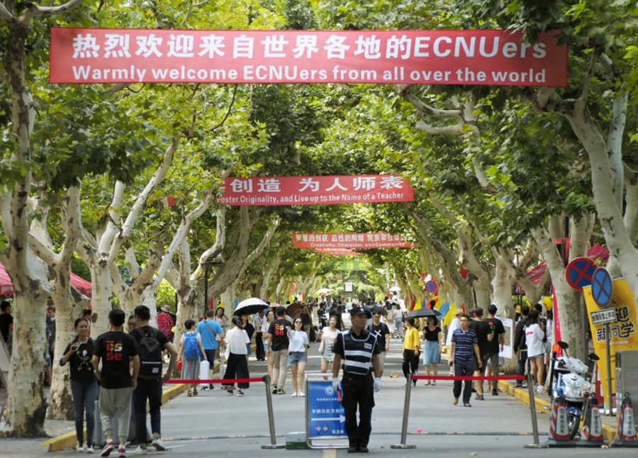 9月9号,迎着朝阳,有很多崭新的面孔走进华东师范大学的校门,校园内到处都可以看到红色的欢迎条幅和指路牌。胜游体育老师和同学也早早的来到各自的岗位,等候新同学的到来。