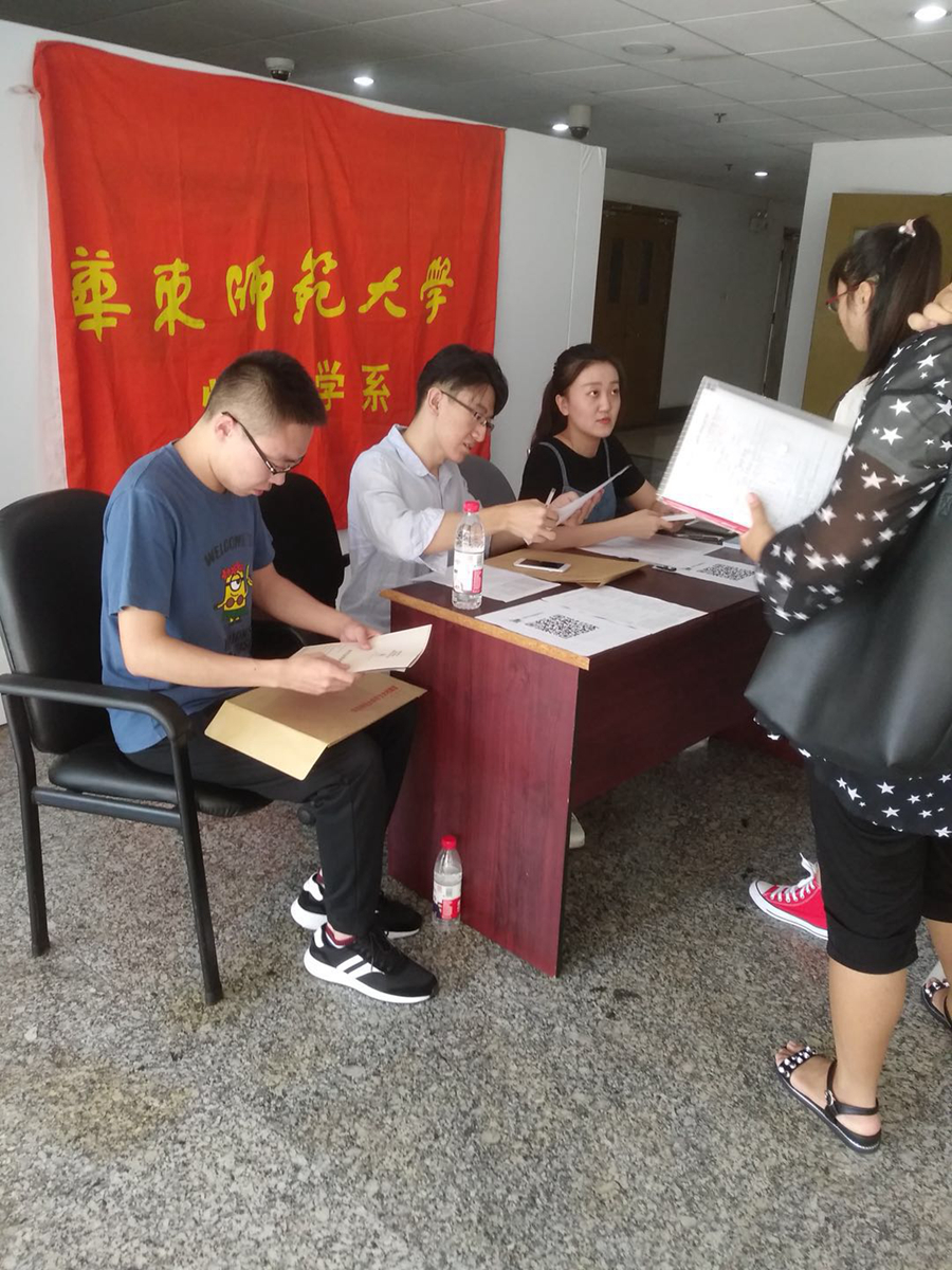 志愿者在闵行校区物理楼为研究生新生办理报到手续