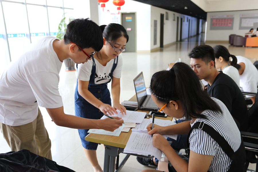 志愿者在中北校区理科大楼为研究生新生办理报到手续