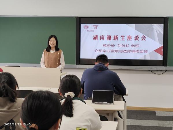 刘俭珍就同学们关心的选课、转专业、辅修等问题进行了详细解答,对学生选课流程及注意事项进行了专业指导,刘俭珍表示,学校一直秉持“以本为本”的理念,高度重视本科生的教育培养,希望同学们认真规划好学习生活,刻苦学习、夯实基础,在师大遇见更好的自己。