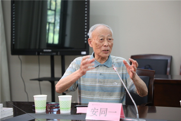 学院副院长胡炳文汇报了学院发展现状和学院“十四五”发展规划,并听取老教授们的意见。胡炳文表示,学院近年来在内涵建设、学科发展、学术研究、尖端产出等方面成果丰硕,未来学院全体师生将发扬优良传统,赓续物理精神,格物穷理、追光明志,取得更大成就。张瑞琨、陈树德、王祖赓等丛书编委分别用“更上一层楼” “再接再厉、砥砺前行”等表达了对学校、学院的美好祝福。