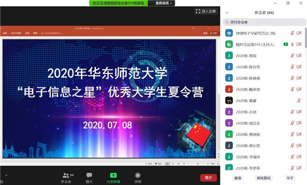 7月8日-9日,2020年“电子信息之星”优秀大学生夏令营在网络平台进行,来自全国44所高校的50余名优秀大学生参加了此次夏令营。