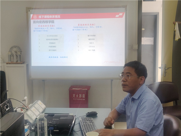 王锦辉以“上海交通大学国家级物理实验教学示范中心课程体系介绍”为主题,着重对上海交通大学物理实验示范中心硬件建设情况,特别是凸显中心历史底蕴的物理实验仪器展厅进行了介绍。同时,就上海交大物理实验中心的历史变迁和荣誉、人员编制、课程体系等作逐一列举,王锦辉谈到,中心会针对不同专业的学生开设的不同特色课程,比如对工科学生开设“理论+实验”相结合、融入课前演示实验的课程方式,对密西根学院学生开设英文实验课程,并且一直保持尽可能采用自制仪器的教学传统,特别是在疫情期间,中心以“线上+线下”相结合的方式,围绕提高学生实验实践能力,开发出了一批居家实验项目,MOOC课程建设也卓有成效。