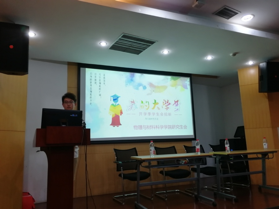 之后,物理与材料科学学院研究生会副主席任志鹏介绍了学院学生会招新事宜。首先,介绍了研究生会的大体情况,学院研究生会是在学院党委领导下进行活动的学生组织,是密切联系学院和研究生之间的桥梁和纽带,是体现研究生“自我管理、自我教育、自我服务”的学生组织,代表的是全体研究生会的权益和意见,为全体研究生提供优质的学习和生活环境服务。胜游体育研究生会共设4个部门,分别为办公室、组织部、学术部、外宣部。