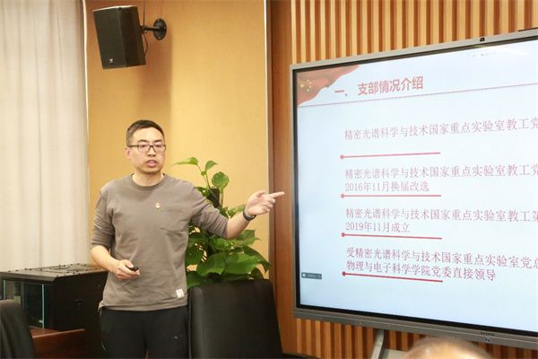 为深入贯彻落实党的二十大精神,强化党建引领作用,推进“服务”+“引领”支部工作模式,助力实验室扩大影响力、提升知名度。4月12日下午,中国激光杂志社总经理杨蕾,副总经理、党支部书记马沂,总编辑黄晓峰等一行20余人应邀至实验室开展联合主题党日活动,精密光谱国重实验室党总支书记郑利娟受邀参会。会议由精密光谱国重实验室教工第一党支部书记潘海峰主持。