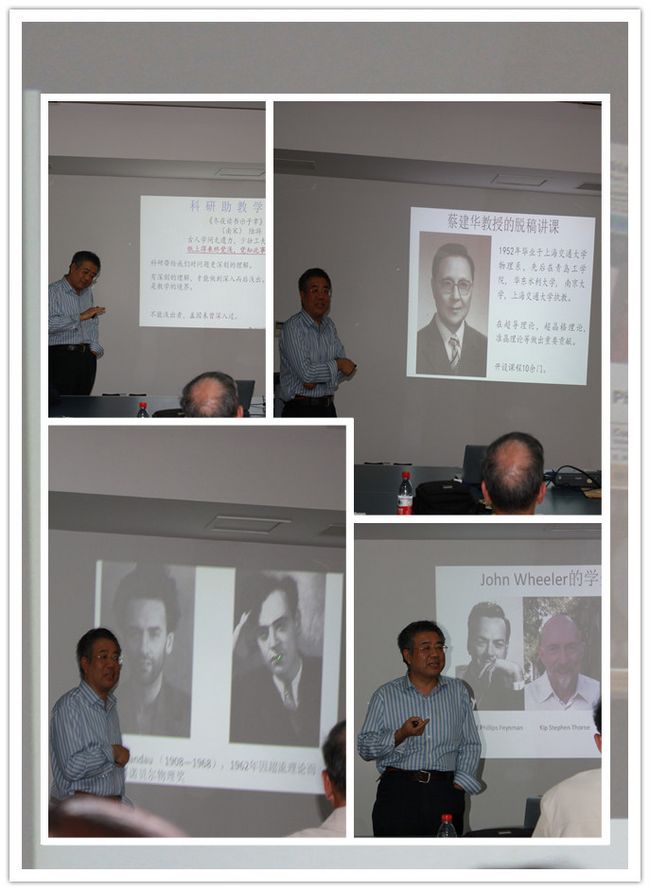 马老师先向大家介绍了物理学家John Wheeler的故事,他是一位活到老,学到老,研究到老的物理学家,而且培养出了物理学奖得主Richard  FeynmanKip Stephen Thorne以及Hugh Everelt lll  等物理学家。在讲到费曼时,马老师引用费曼的话,我教学的目的,不是为你们参加考试做准备,甚至不是为你们服务于工业或军事做准备,我最想做的是给出对于这个奇妙世界的一些欣赏,以及物理学家看待这个世界的方式。来表达马老师对于教学的看法。