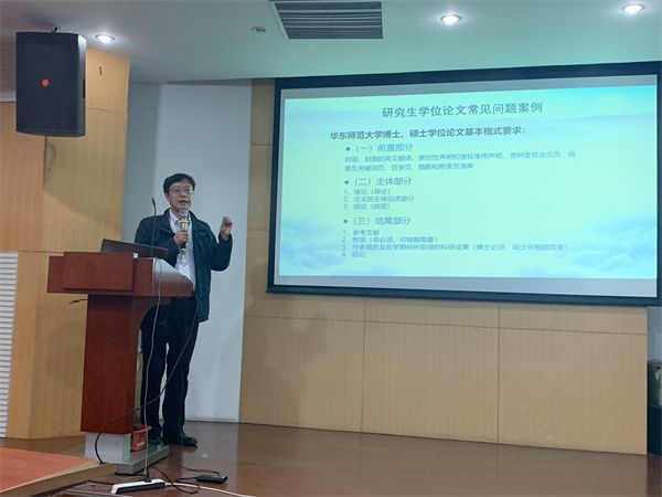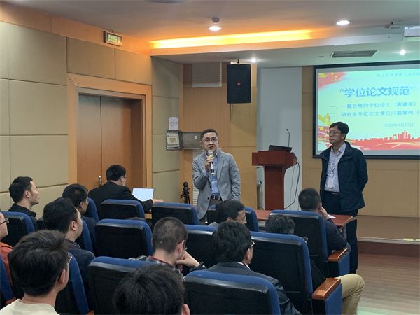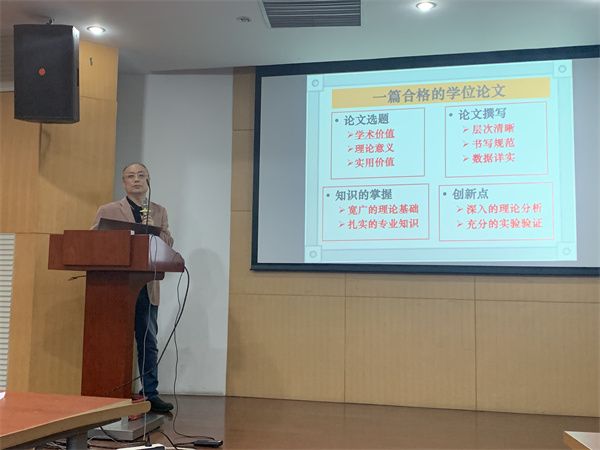 校研究生教学督导、电磁场与微波技术方向博士研究生导师高建军以“一篇合格的学位论文”为题,对学位论文的总体要求、结构规范、工作量、研究内容和逻辑进行讲解,他强调,“学位论文应围绕一个中心思想,需要注意结构的完整性和内容的系统性”。