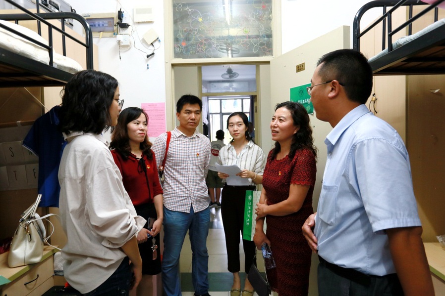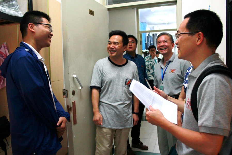 随后,胜游体育党委书记李恺,院长程亚,副院长周先荣,副院长胡炳文,党委副书记蒋旭,材料科学系系主任敬承斌,电子科学系系主任陈时友、教工党支部书记黄荣,物理学系副系主任柴志方、李欣,精密光谱科学与技术国家重点实验室党总支副书记马玲、党总支委员潘海峰、贾天卿等分组前往学生寝室,看望2019级新同学。
