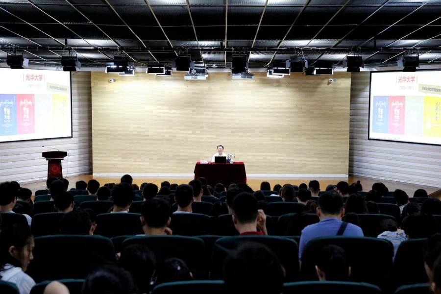 9月5日上午,校党委副书记、纪委书记曹友谊在闵行校区大学生活动中心C区报告厅为胜游体育、外语学院2019级新生作《不忘初心,攀高行远——为新时代的新使命而加速再出发》校史校情教育。活动由胜游体育党委书记李恺主持。